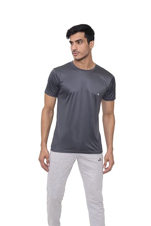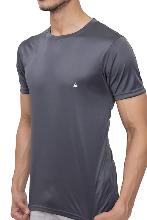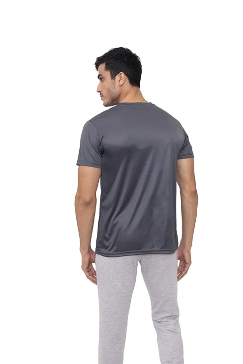 Solid Round Neck Polyester Black T-Shirt for Men